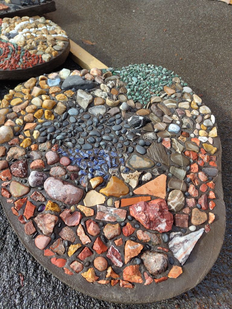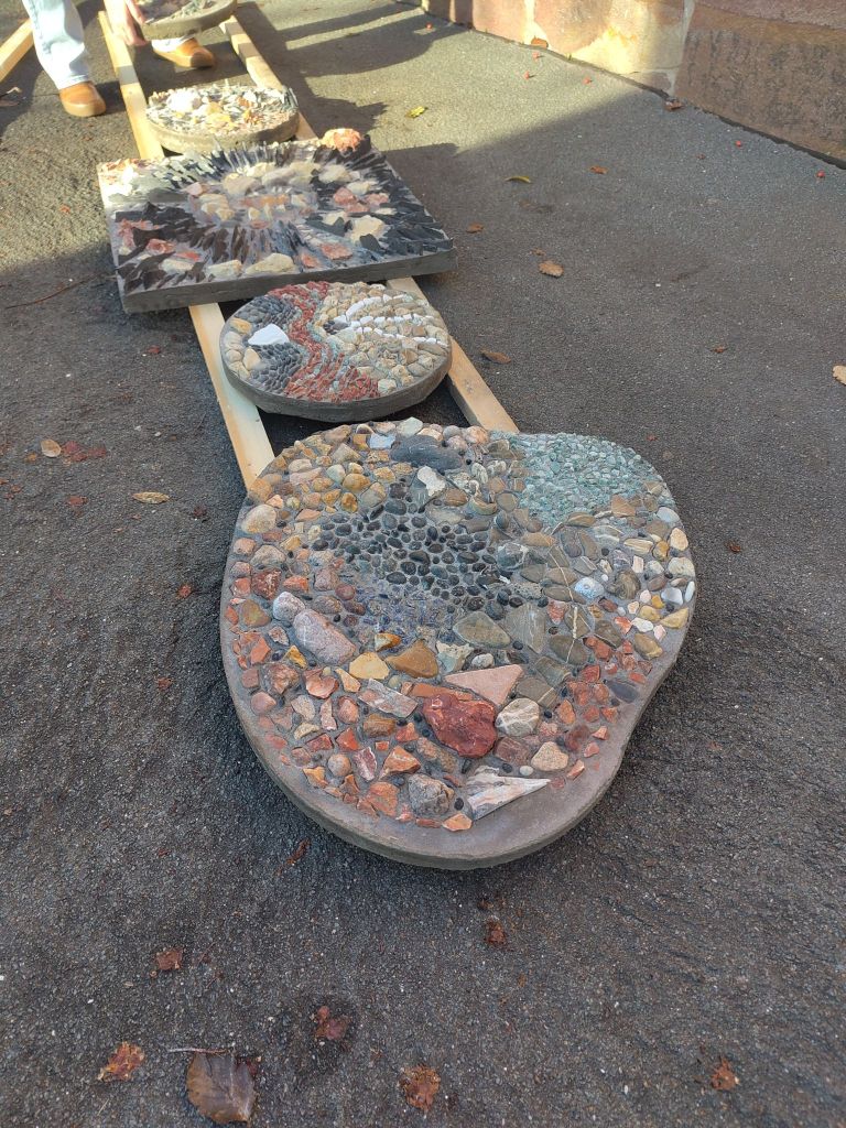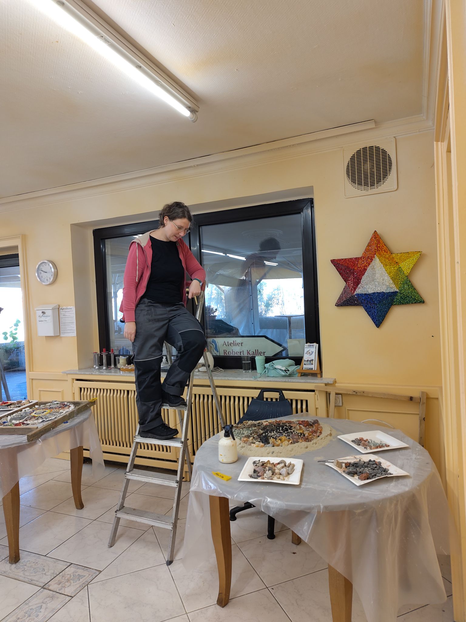 Seit September 2024 studiere ich Mosaik-Kunst an der Mosaikbauschule Dortmund. Im ersten Modul ging es um Natursteinmosaik, um das Material und ein erstes Werk entstand im direkten Setzverfahren. In Sand wurde eine Mosaik vorgelegt. Anschließend wurde der Beton angerührt, der Rahmen vorbereitet und mit Beton ausgegossen. Dann wurde das Mosaik in den Beton gesetzt. Mehr Informationen und Bilder der anderen Studentinnen gibt es hier.
