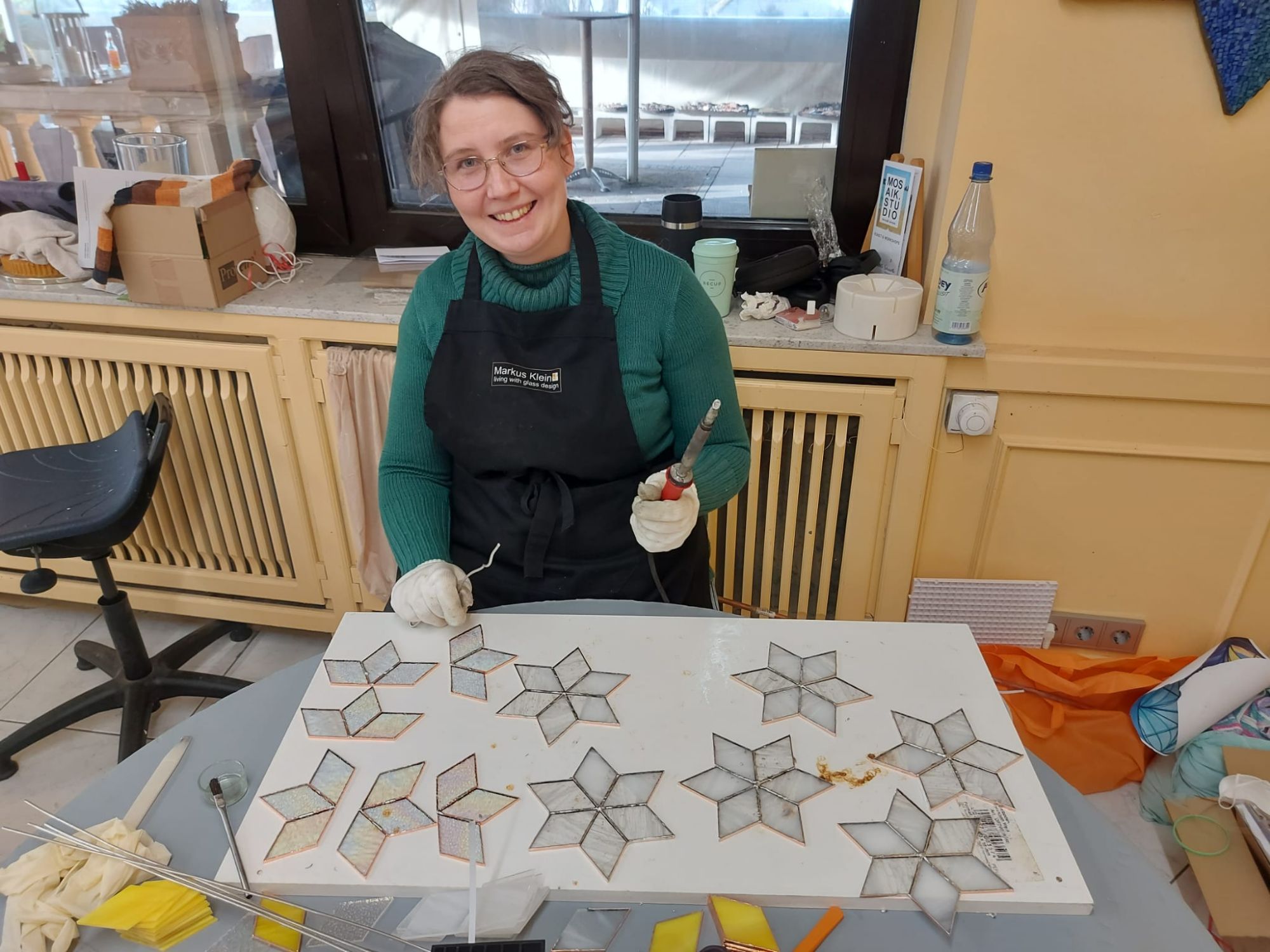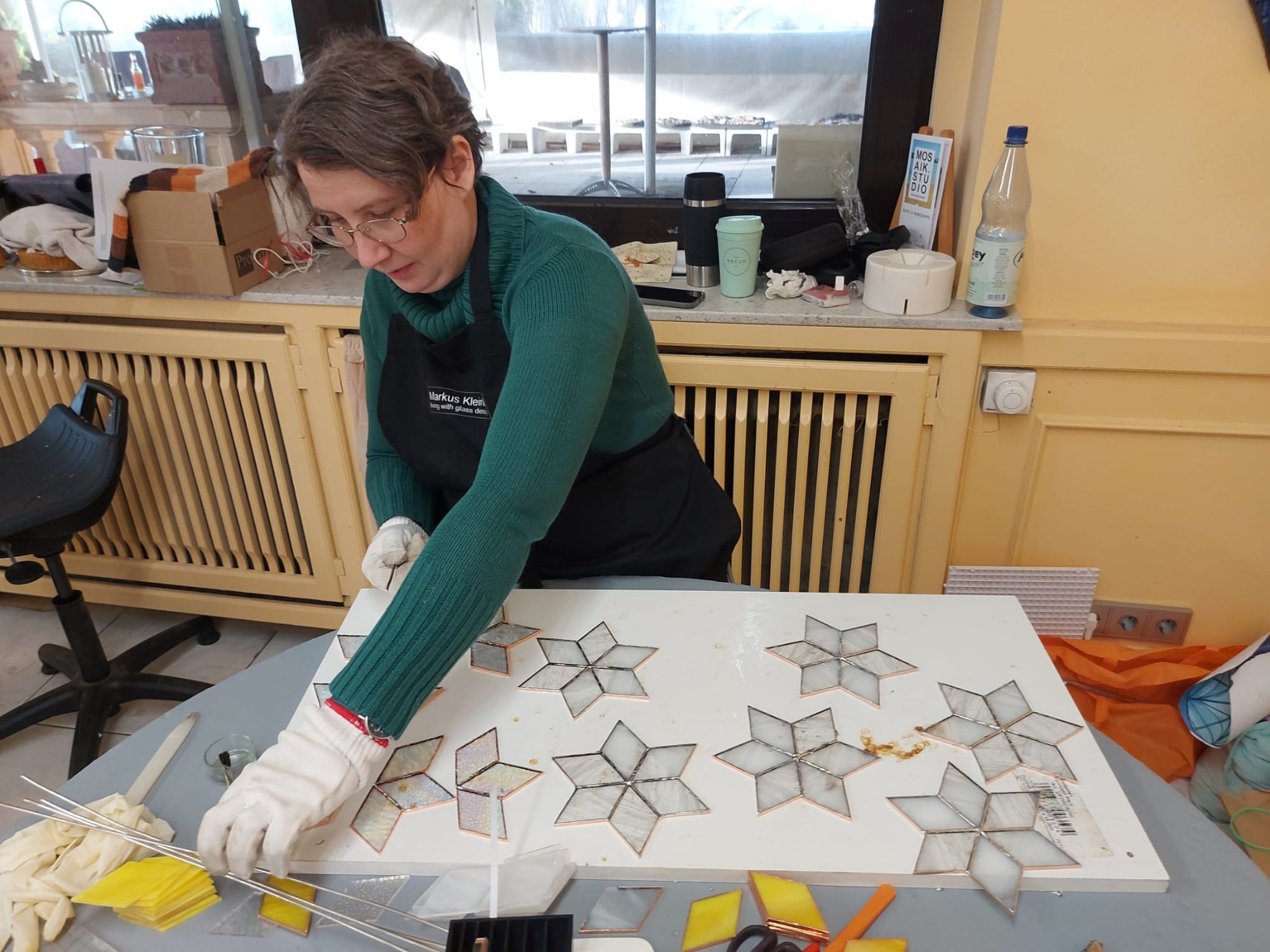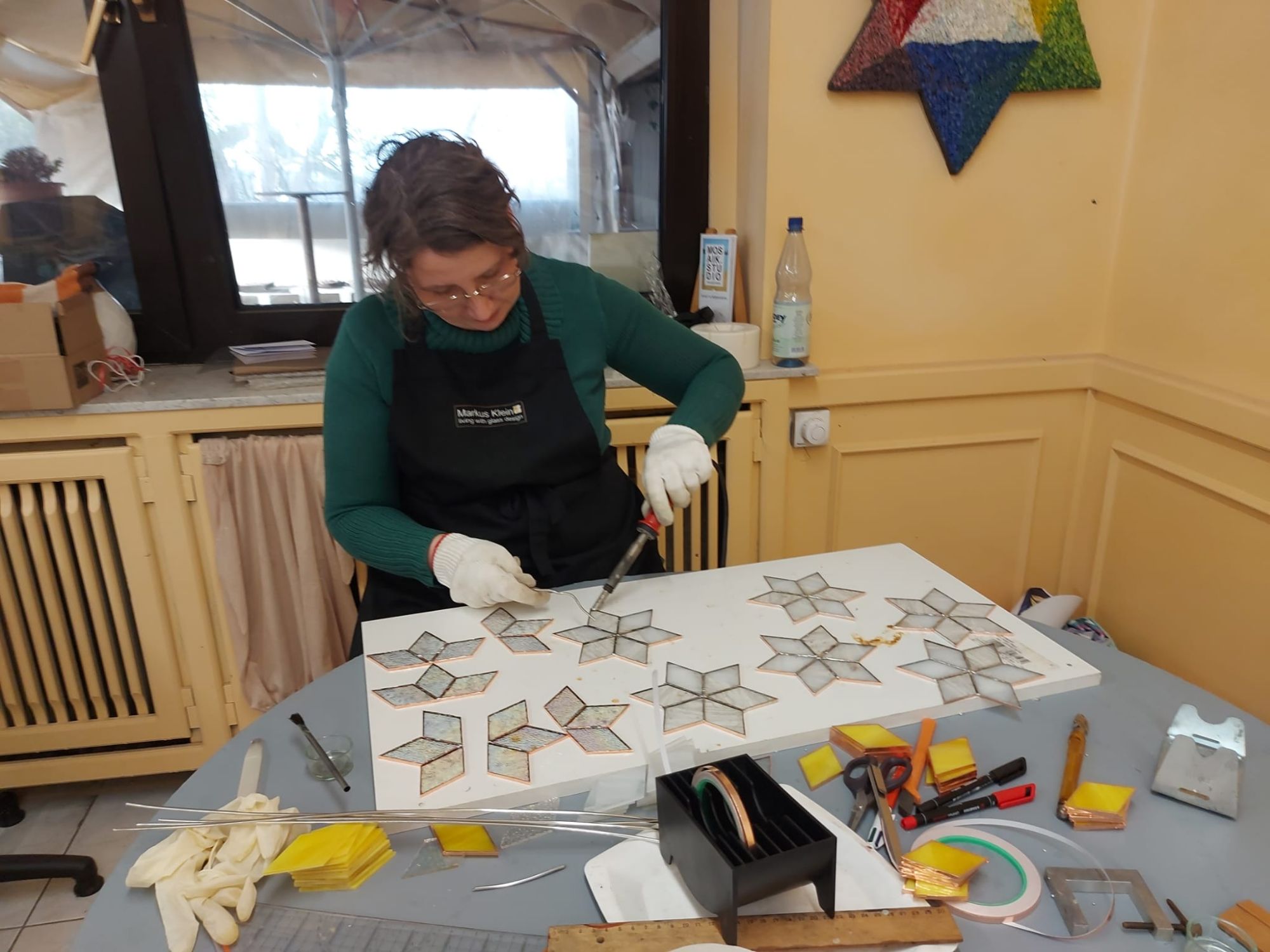 Auf das Modul 4 mit Markus Klein habe ich mich sehr gefreut, habe ich doch mit Kupferfolientechnik meinen Weg zum Mosaik begonnen, in 2023 im Mosaikstall von Rainer Bechthold.