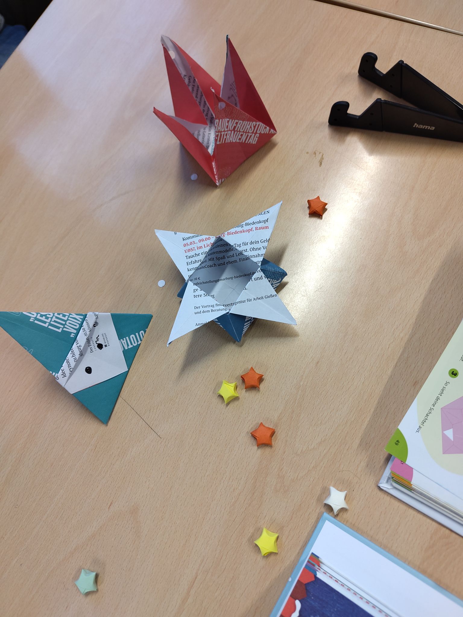 Seit dem Wintersemester 2024/2025 gebe ich zusammen mit Pirijanga Savunthararajah Origami Kurse an der VHS.