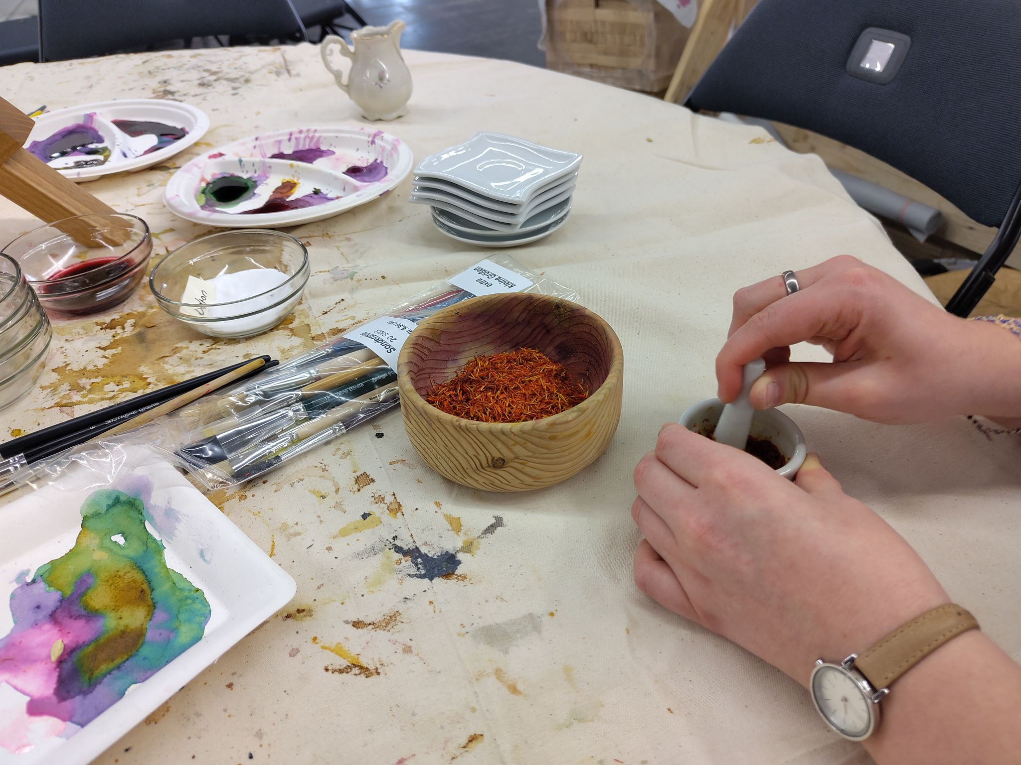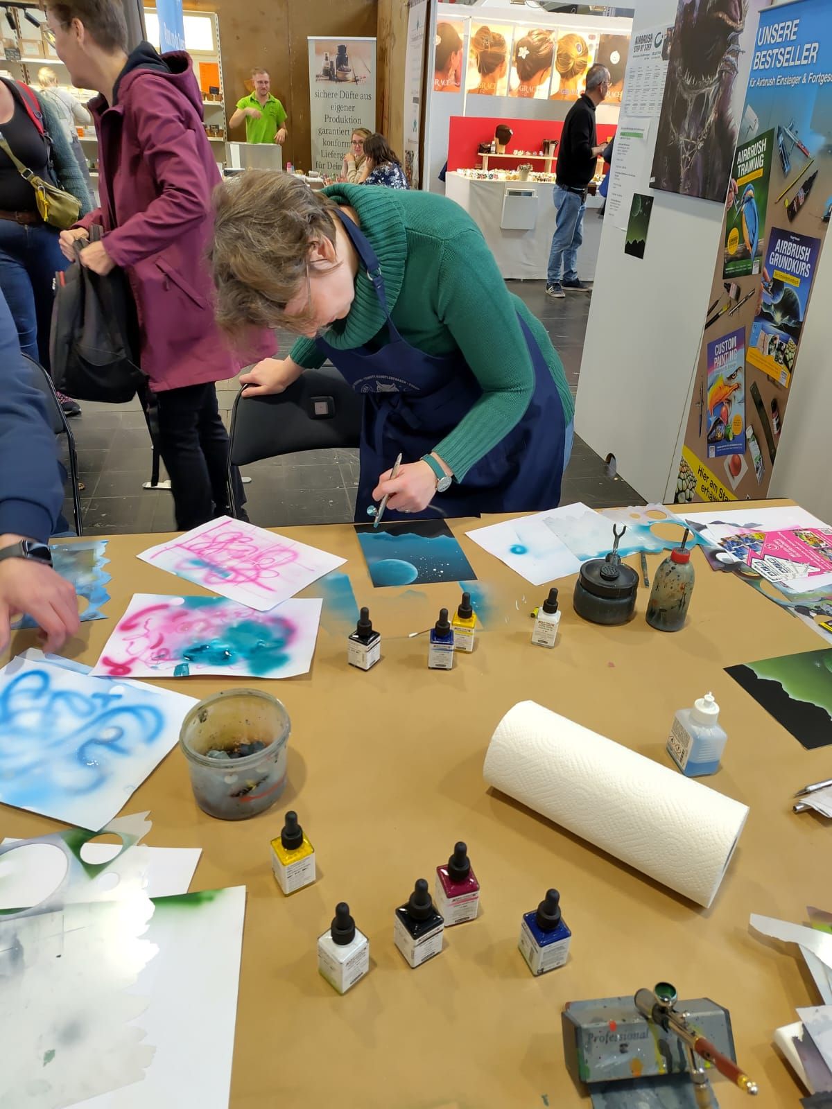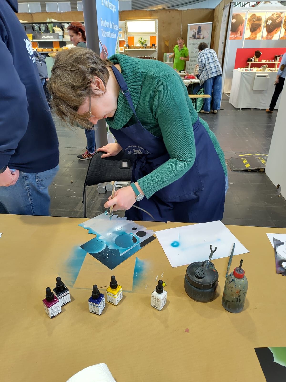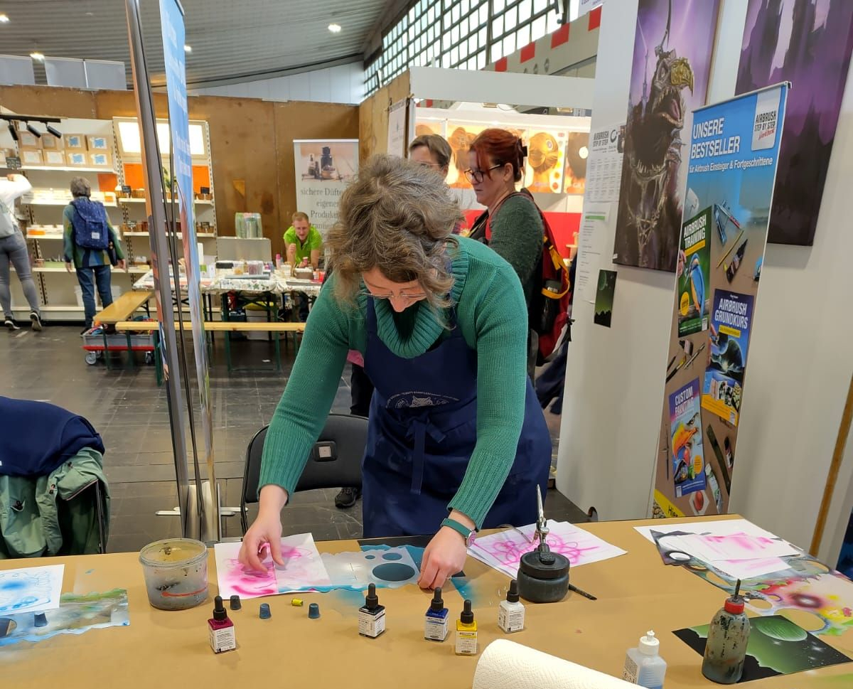 Seit 2023 bin ich jedes Jahr auf der Creativa (2022 hatte ich auch Karten, aber es fiel leider aus). Jedes mal bleibe ich bei den Ständen hängen, wo man selbst kreativ werden kann. Experimente mit Naturfarben, Filzen, Klöppeln, Leder bearbeiten, drechseln… Alles ist möglich.