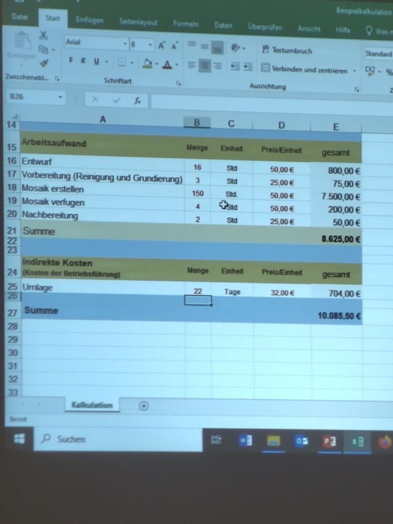 im 10. Modul ging es um Kalkulation und Auftragsbezogene Vorbereitung. Nebenbei konnte ich über Projektarbeit und die Abschlussarbeit nachdenken. Mehr auf der Seite der Mosaikbauschule.
